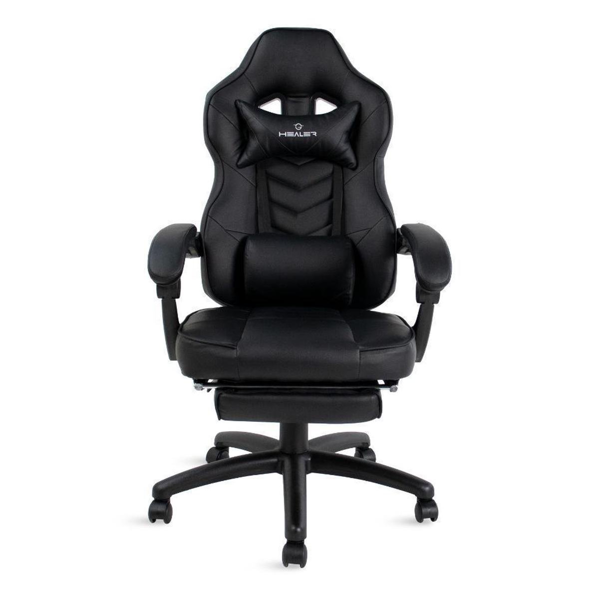 Dores no corpo em geral que incluem cabeça, pescoço, costa e lombar podem ser resultados da má postura durante a jornada de trabalho. Isso porque, muitas vezes sentamos em uma cadeira não adequada. Cada vez mais escritórios têm substituído as cadeiras de escritórios comuns por cadeiras gamers para solucionar esse problema. Isso em razão de que a cadeira gamer é fabricada pensando nas longas horas de uso, seja a trabalho ou para jogar. Para obter conforto extra durante a jornada de trabalho compre a cadeira gamer Alien da linha Healer. Essa peça suporta seu corpo em diferentes posições, pois é ergonômica e inclinável, mantendo assim, seu corpo confortável em uma posição neutra que diminui o impacto na coluna. . Além disso, possui almofadas de encostos para pescoço e lombar que diminuem o impacto nessa região, mesmo depois de horas de uso. . A cadeira gamer Alien também possui assento e encosto acolchoados revestidos em Pu, que além de proporcionar conforto também garante durabilidade a peça. Além disso, possui ajuste de altura que pode chegar até 125 cm de altura com 75 cm de largura e 53 cm de profundidade, apoio de braços acolchoados, rodinhas que facilitam a locomoção e apoios de pés, demais né? . Por ser compacta e discreta essa cadeira gamer é ideal para compor o seu espaço de trabalho. ATENÇÃO: Apenas a cadeira, outros produtos que ambientam as imagens não acompanham. Imagens meramente ilustrativas. .