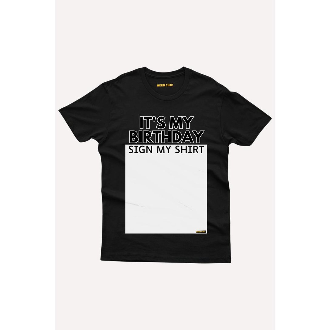 Camiseta Nerd Chic It's My Birthday Sign My Shirt - Para presente - Preto