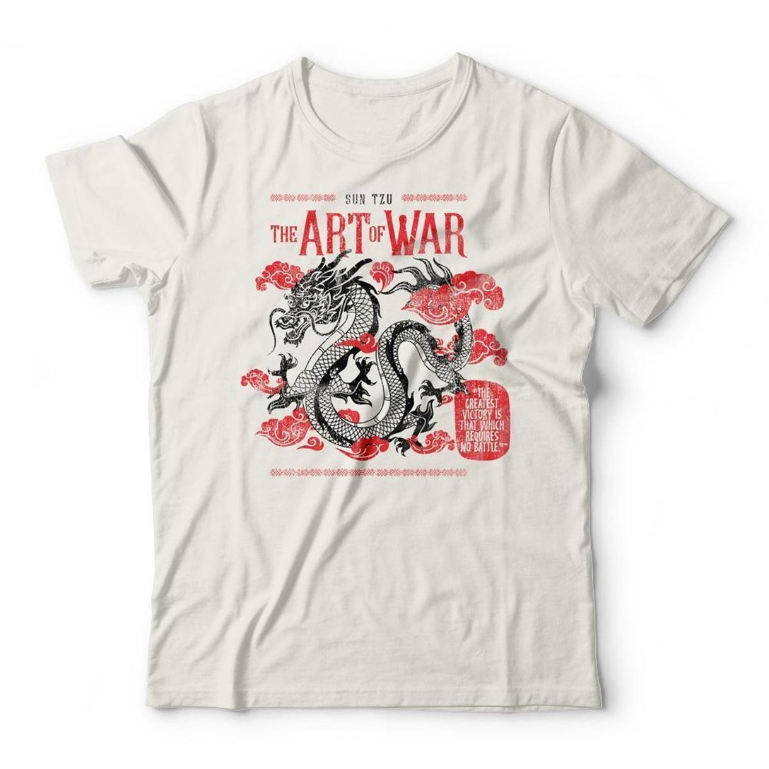 Informações do Produto. • Tecido: 100% algodão 30.1 penteado, com tratamento confort que proporciona toque macio e com critérios corretos de sustentabilidade. • Cor: Off White. • Costuras reforçadas no colarinho e ombros. • Tipo de impressão: DTG - Impressão digital direta no tecido com toque zero e alta durabilidade. Sobre a Estampa. • Arte exclusiva com tema de A Arte da Guerra de Sun Tzu. • Design feito por Studio Geek. • Estampa levemente desbotada estilo Vintage. • Atenção: As cores podem apresentar diferenças de tonalidades devido a iluminação e variação de monitores.