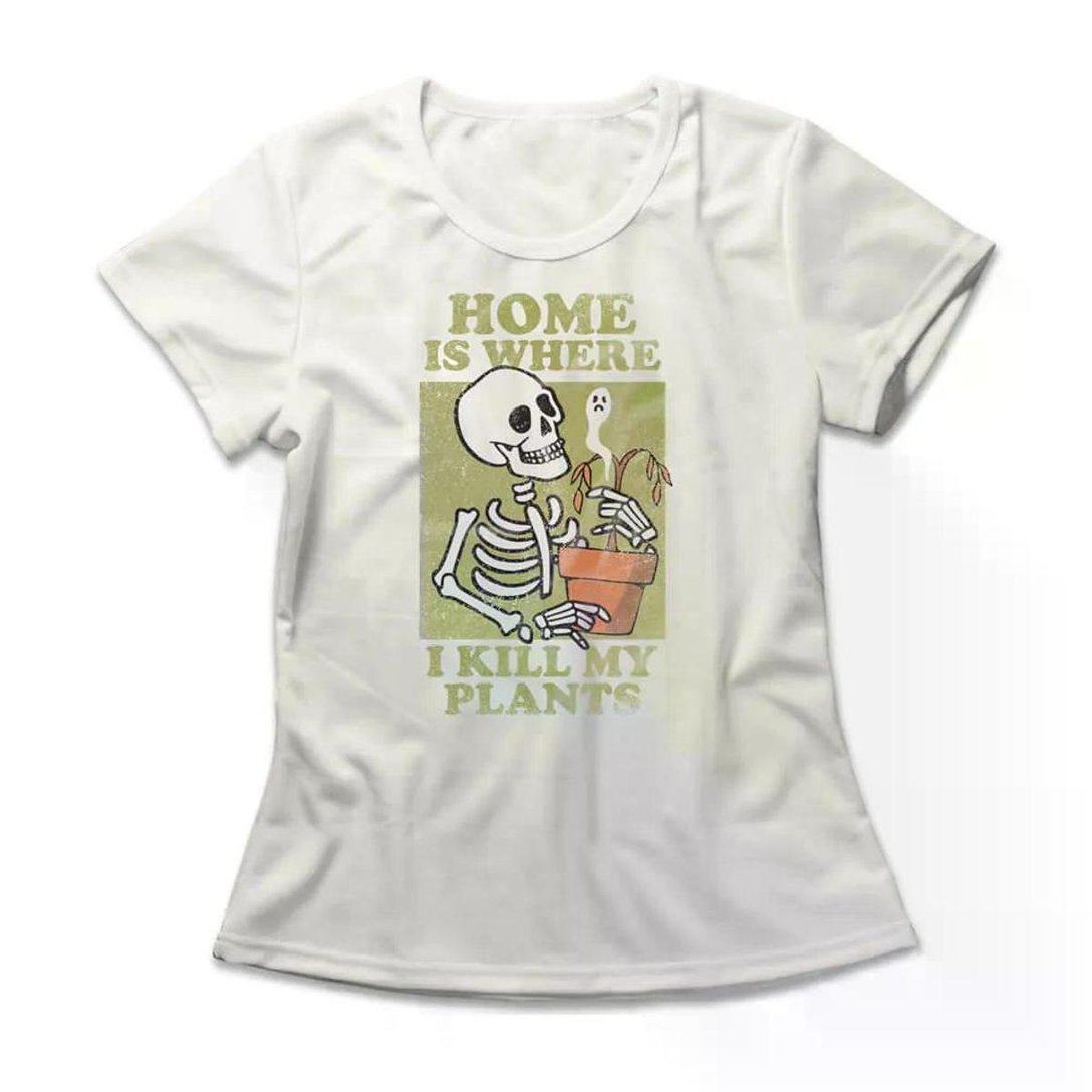 Camiseta Studio Geek Home Is Where I Kill My Plants Feminino - Off White