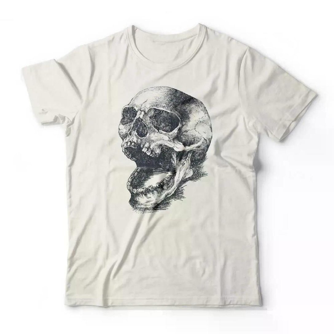 Informações do Produto. • Tecido: 100% algodão 30.1 penteado, com tratamento Confort que proporciona toque macio e com critérios corretos de sustentatibilidade. • Cor: Off White. • Costuras reforçadas no colarinho e ombros. • Tipo de impressão: DTG - Impressão digital direta no tecido com toque zero e alta durabilidade. Sobre a Estampa. • Arte exclusiva com tema de caveiras. • Design feito por Studio Geek. • Estampa levemente desbotada estilo Vintage. • Atenção: As cores podem apresentar diferenças de tonalidades devido a iluminação e variação de monitores.