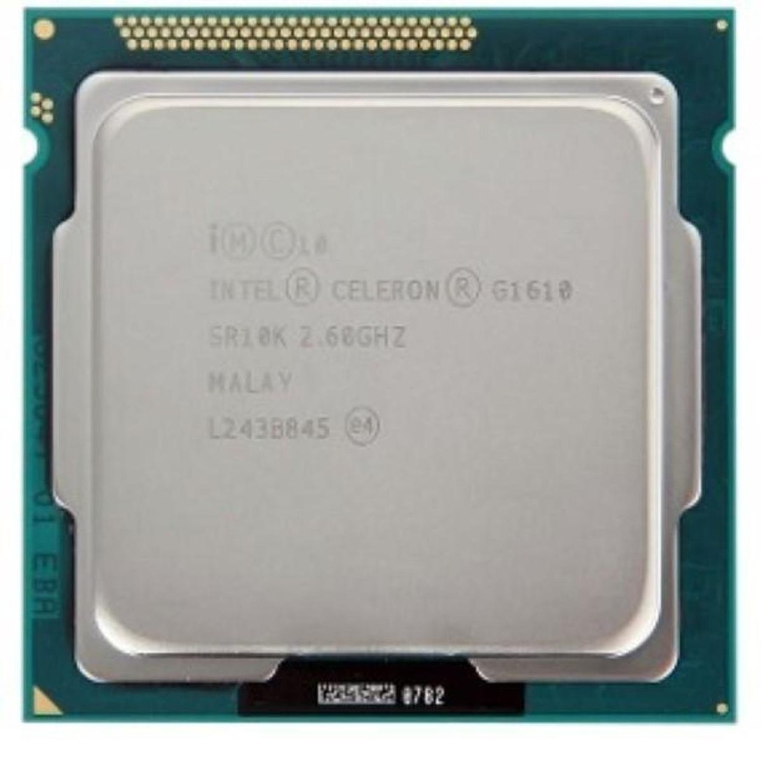 Intel® Celeron® Processor G1610 (2M Cache, 2.60 GHz) . PN: BX80637G1610 . ::Essentials. . Status: Launched . Launch Date: Q1 `13 . Processor Number: G1610 . # of Cores: 2 . # of Threads: 2 . Clock Speed: 2.6 GHz . Intel® Smart Cache: 2 MB . DMI: 5 GT/s . Instruction Set: 64-bit . Instruction Set Extensions: SSE4.1, 4.2 . Embedded Options Available: No . Lithography: 22 nm . Max TDP: 55 W . ::Memory Specifications . Max Memory Size (dependent on memory type): 32 GB . Memory Types: DDR3-1333 . # of Memory Channels: 2 . Max Memory Bandwidth: 25.6 GB/s . ECC Memory Supported: Yes . ::Graphics Specifications . Processor Graphics: Intel® HD Graphics . Graphics Base Frequency: 650 MHz . Graphics Max Dynamic Frequency: 1.05 GHz . # of Displays Supported :3 . ::Expansion Options . PCI Express Revision: 2.0 . PCI Express Configurations: 1x16, 2x8, 1x8 & 2x4 . ::Package Specifications . Max CPU Configuration: 1 . Package Size: 37.5mm x 37.5mm . Sockets Supported: FCLGA1155 . Low Halogen Options Available: See MDDS . ::Advanced Technologies . Intel® Turbo Boost Technology: No . Intel® vPro Technology: No . Intel® Hyper-Threading Technology: No . Intel® Virtualization Technology (VT-x): Yes . Intel® Virtualization Technology for Directed I/O (VT-d): No . Intel® Trusted Execution Technology: No . AES New Instructions: No . Intel® 64: Yes . Intel® Anti-Theft Technology: No . Intel® My WiFi Technology: No . Idle States: Yes . Enhanced Intel SpeedStep® Technology: Yes . Thermal Monitoring Technologies: Yes . Execute Disable Bit: Yes . Intel® VT-x with Extended Page Tables (EPT): Yes