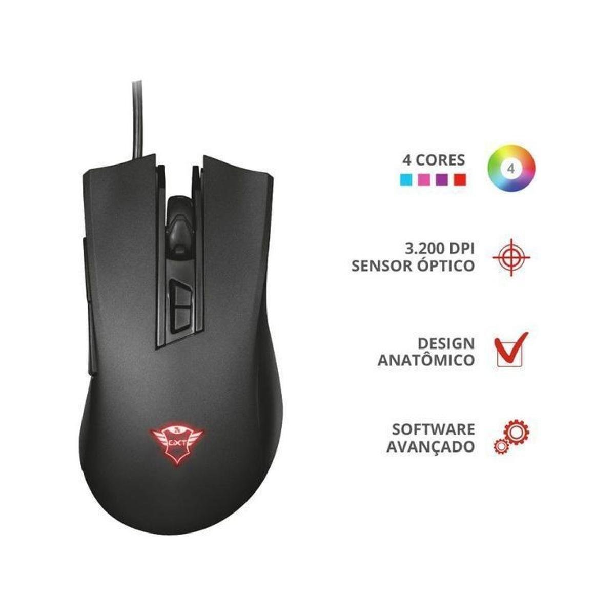O mouse gamer GXT 121 Zeebo da Trust é ergonômico com iluminação LED ajustável, 7 botões programáveis, software para iluminação, botões e macros, sensor de 3200dpi e é compatível com PC e Laptop. Seu sensor ótico é de alta precisão e possui 3200dpi para curtir seus jogos favoritos. São 7 botões de reação rápida e programáveis para facilitar sua jogatina e ser mais rápido em cada ação dentro do jogo. Iluminação LED personalizável. Software avançado para programar botões, macros e luzes para melhorar a estética e sua performance. Design ergonômico e leve para dar mais rapidez e conforto nos movimentos.