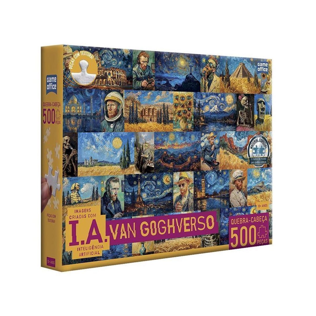 Um quebra-cabeça é um desafio instigante que exercita a mente. Ao encaixar peças dispersas, construímos imagens e desvendamos mistérios, estimulando a paciência, a concentração e o raciocínio lógico. Além de um excelente passatempo, de juntar a família e de melhorar a concentração, o quebra-cabeça Game Office Van Goghverso com 500 peças da Toyster, se torna um lindo objeto de decoração. Ele montado tem formato retangular, cada peça possui textura, o que proporciona um toque especial. Indicado para crianças a partir de 10 anos. Imagem criada com inteligência artificial.
