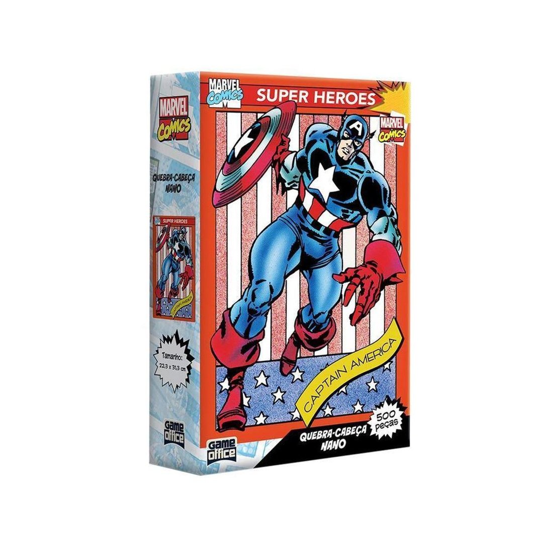 Para os amantes do Capitão América, a Toyster traz o Quebra-Cabeça Marvel Capitão América com uma ilustração incrível para você montar e decorar o ambiente! O quebra-cabeça da linha Game-Office possui 500 peças, as peças possuem o tamanho nano e são feitas de papel e papel cartão especial. Indicado para crianças a partir de 10 anos de idade. Este brinquedo ajuda a desenvolver a coordenação motora, capacidade cognitiva e estimula a criatividade. O tamanho do quebra-cabeça pronto é de 22,3cm de largura e 31,3cm de comprimento. Diversão para família toda!