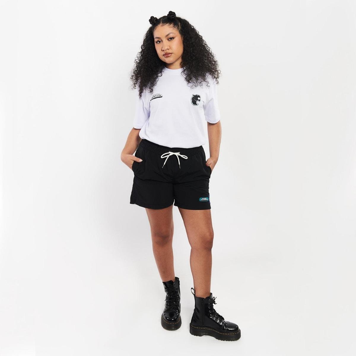Shorts em tecido tactel -Cós elástico com ajuste por cordão -Quatro bolsos -Estampa em silk screen Corpo: 100% Poliamida Forro em mesh dos bolsos: 100% Poliéster