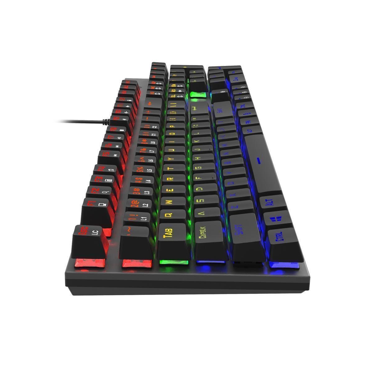 Especificações Técnicas: Switches Mecânicos MX RED • Múltiplas Teclas Anti-Ghosting • Teclas Duráveis: Até 50 Milhões de Cliques • Impressão de Keycap de Injeção Dupla Durável • Formato Full Size (com teclado numérico): 104 teclas • Layout: ABNT2 • Luz De Fundo Dinâmica Rainbow • Base em ABS Premium • Pés Antiderrapantes • Cabo USB com Fibra Trançada de Alta Qualidade com 1,8 m de Comprimento • Tamanho: 425 mm (L) x 120 mm (P) x 30 mm (A) • Peso: 650 Gramas
